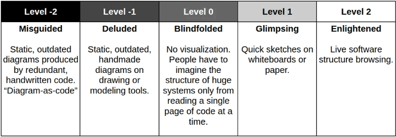 We need a model and a platform that meet the following requirements for clear and effective software structure visualization: